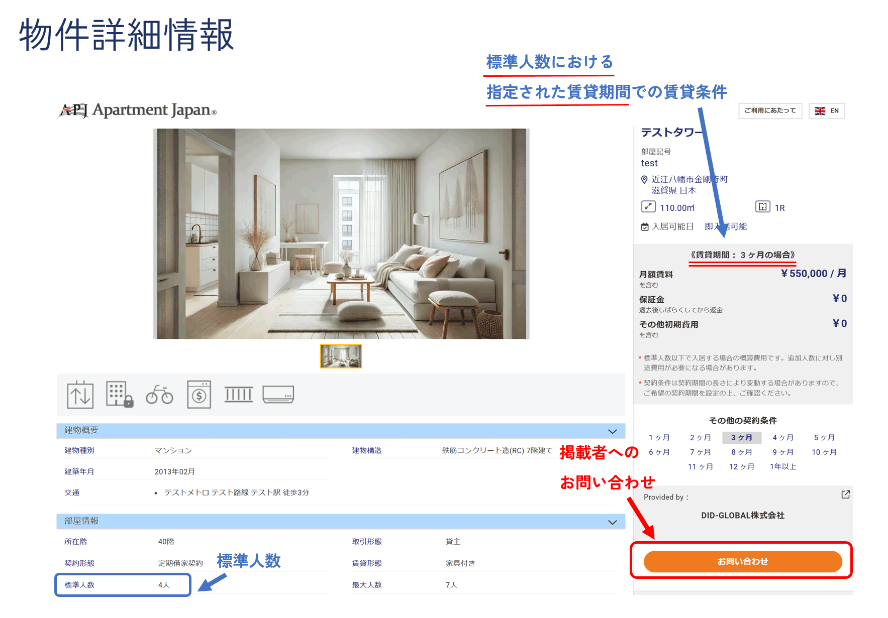 同じ物件でも、ご利用される賃貸借契約期間により契約条件(月額費用等)が異なります。